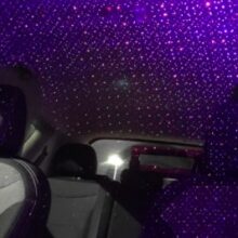 Our USB Ceiling Night Light comes in a choice of red or purple LED light. When turned on, you can turn the dial to change lighting effects and patterns, from stars to dots to constellation-like projections.